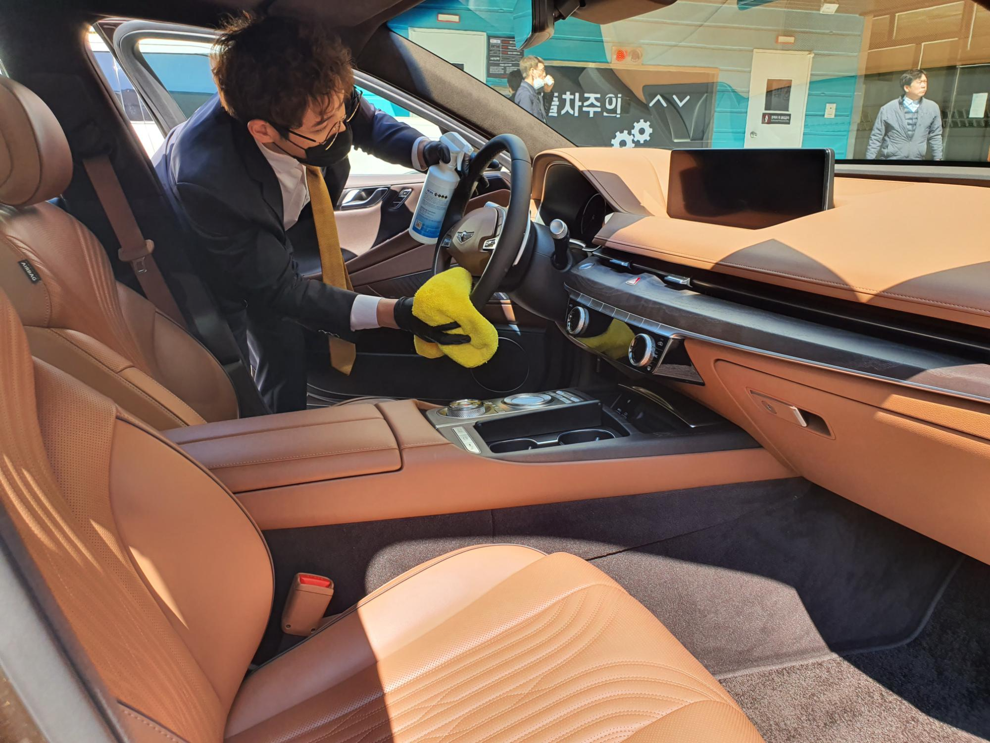 손이 많이 닿는 핸들 등 차량 내부도 아주 신경써서 위생관리에 정성을 쏟았습니다