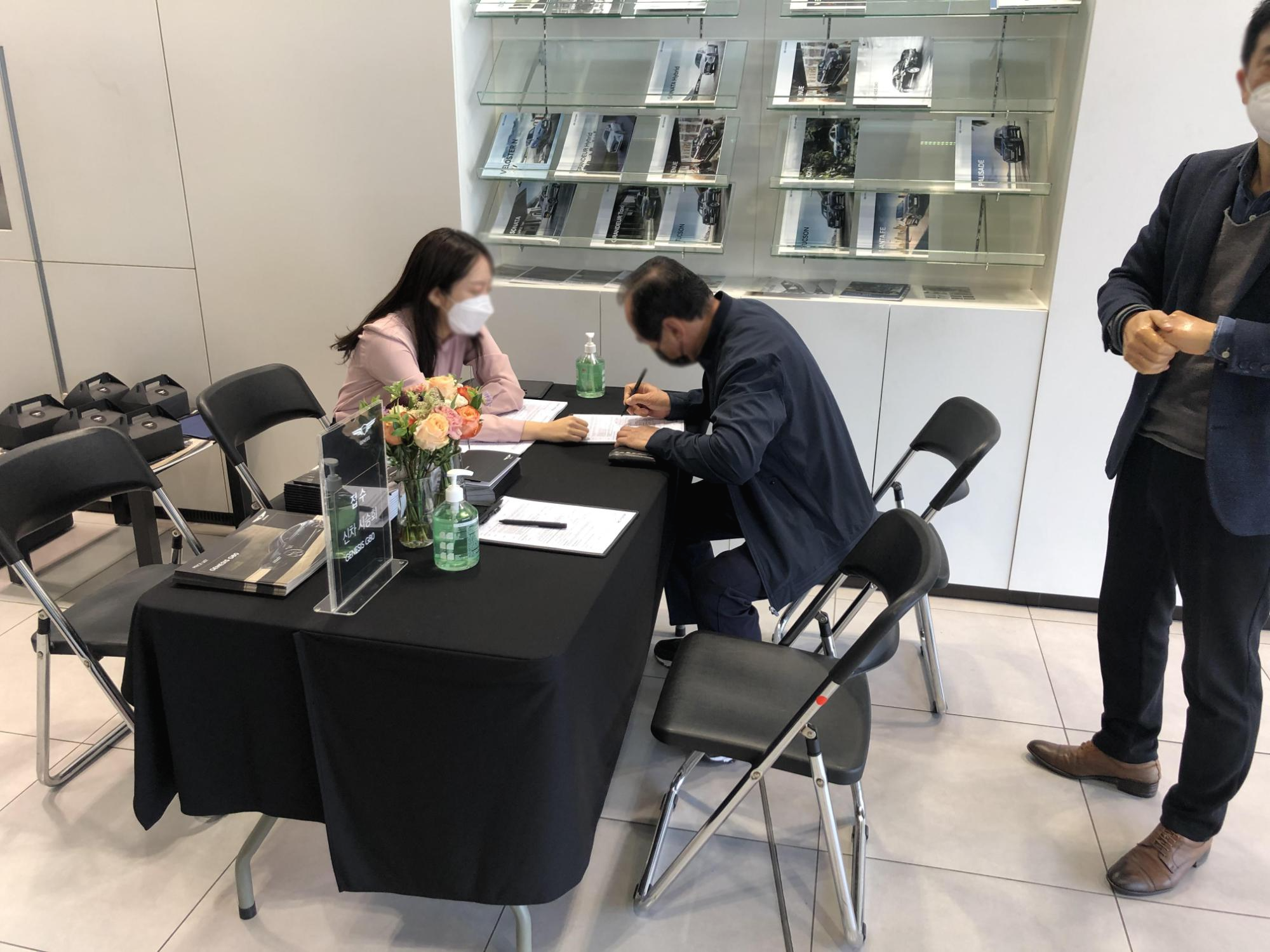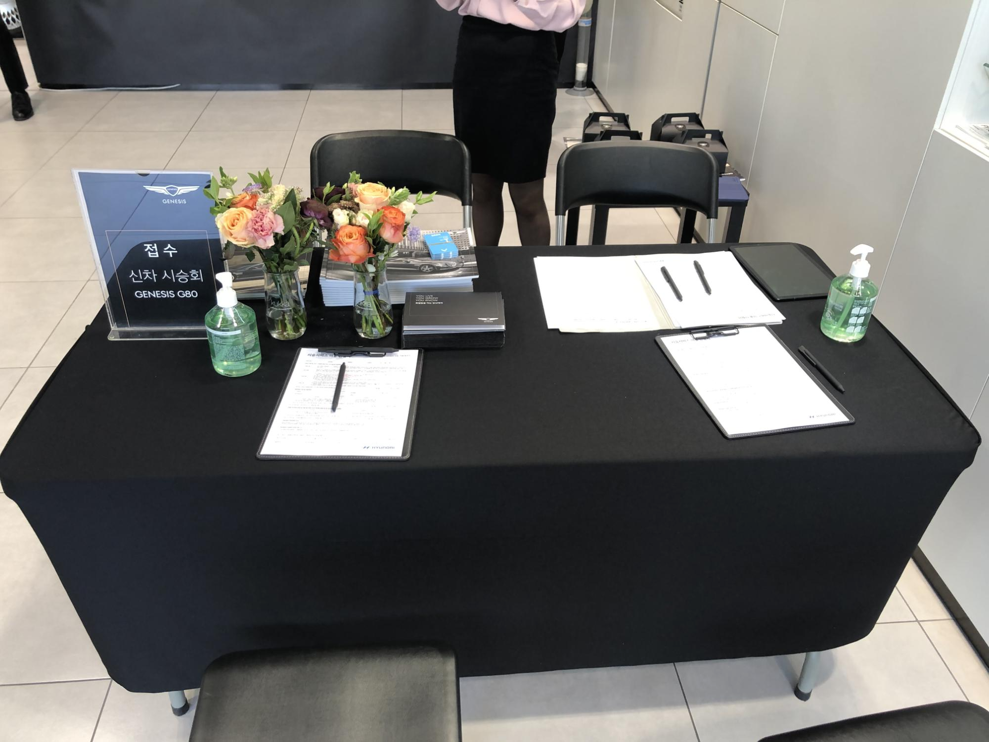 제네시스 G80 차량 시승을 위해 접수 및 시승 동의서를 작성하는 공간입니다!