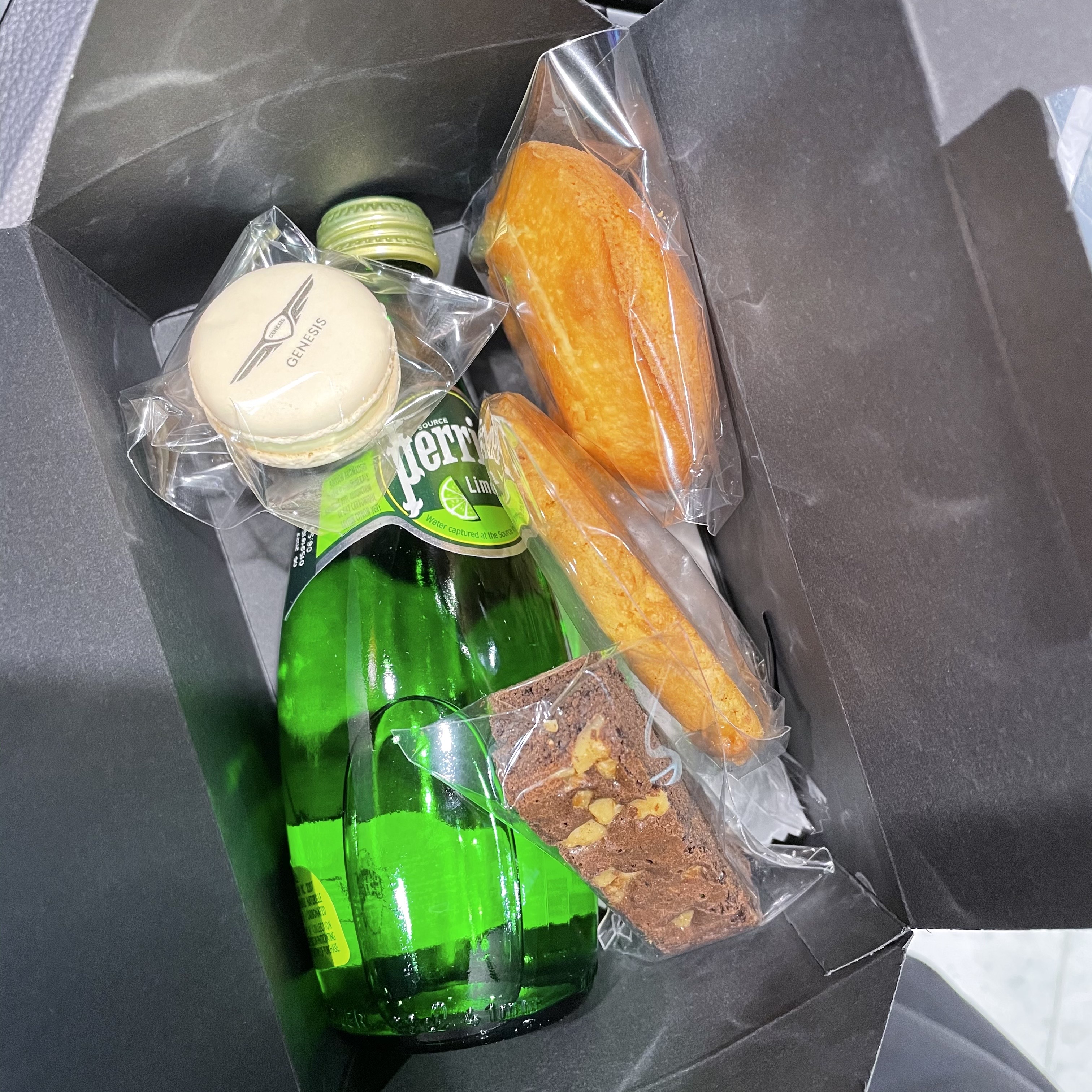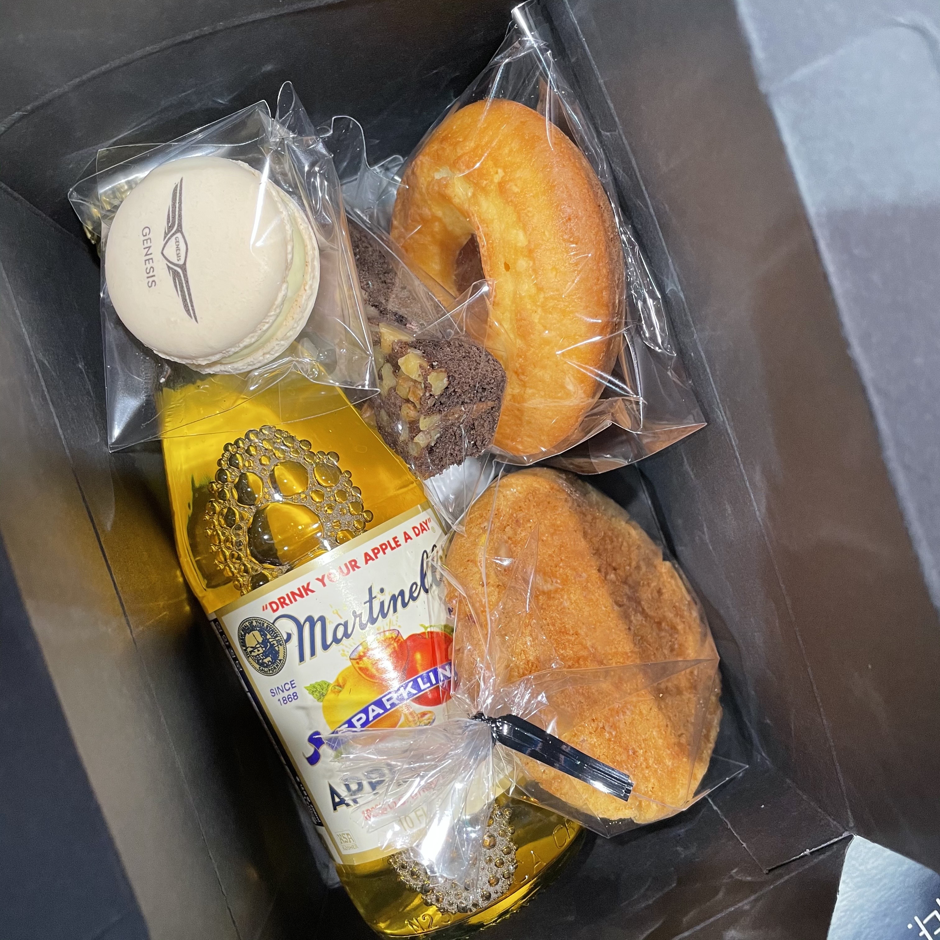 케이터링은 제네시스 로고가 브랜딩 된 마카롱, 도넛 및 쿠키류,