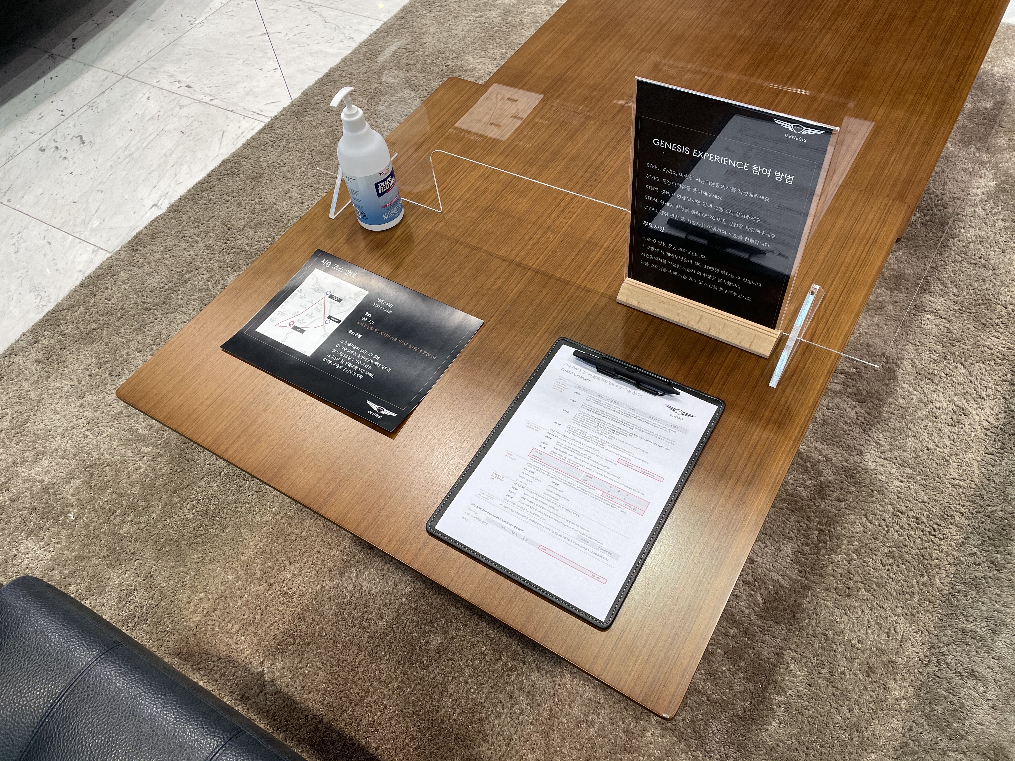 프라이빗룸에서는 손소독 후, 시승 코스 확인, 시승 유의사항 숙지, 시승 신청서를 작성합니다!
