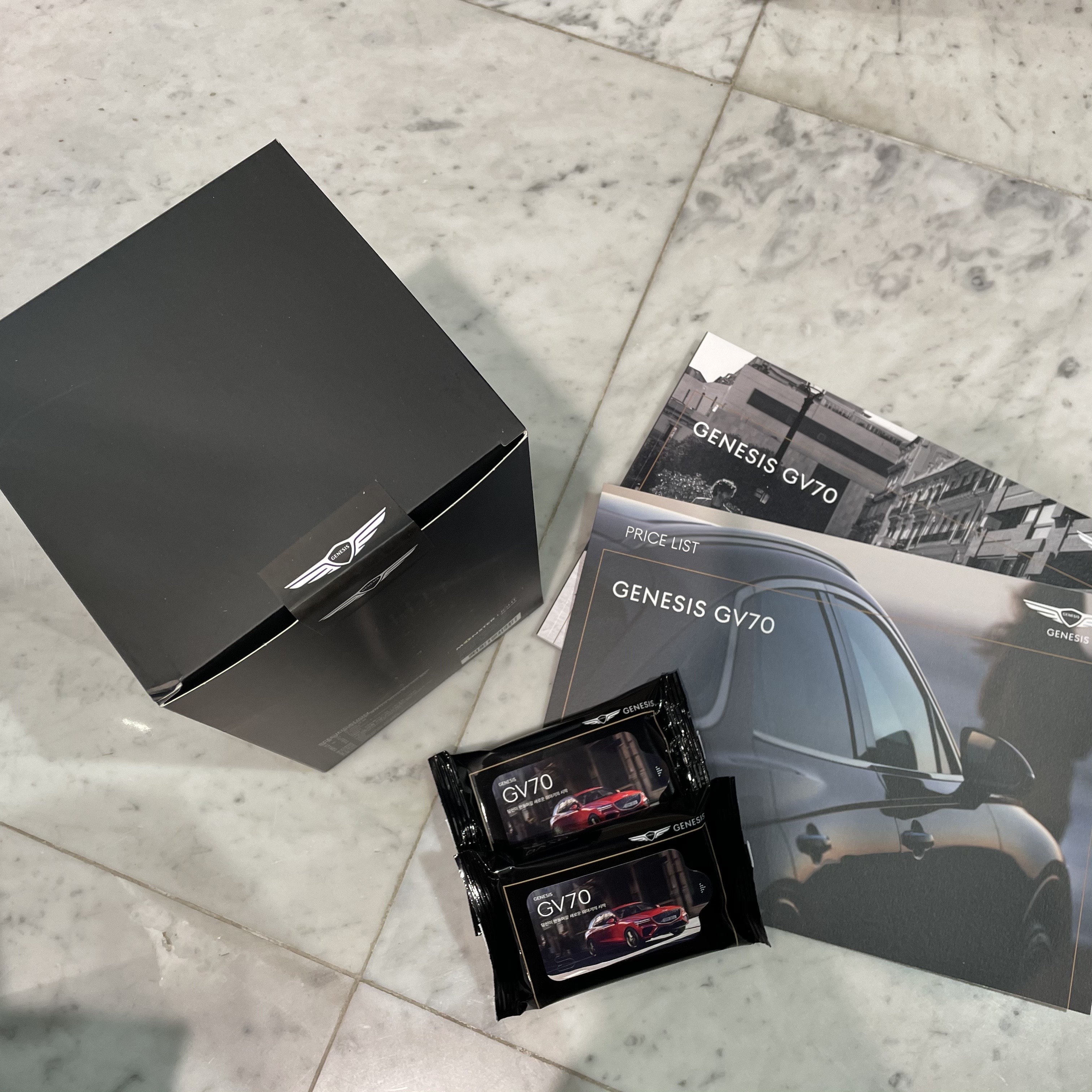 기념품은 고급 랜턴, 휴대용 물티슈, GV70 차량 정보 및 가격 안내 책자로 구성되어 있습니다!