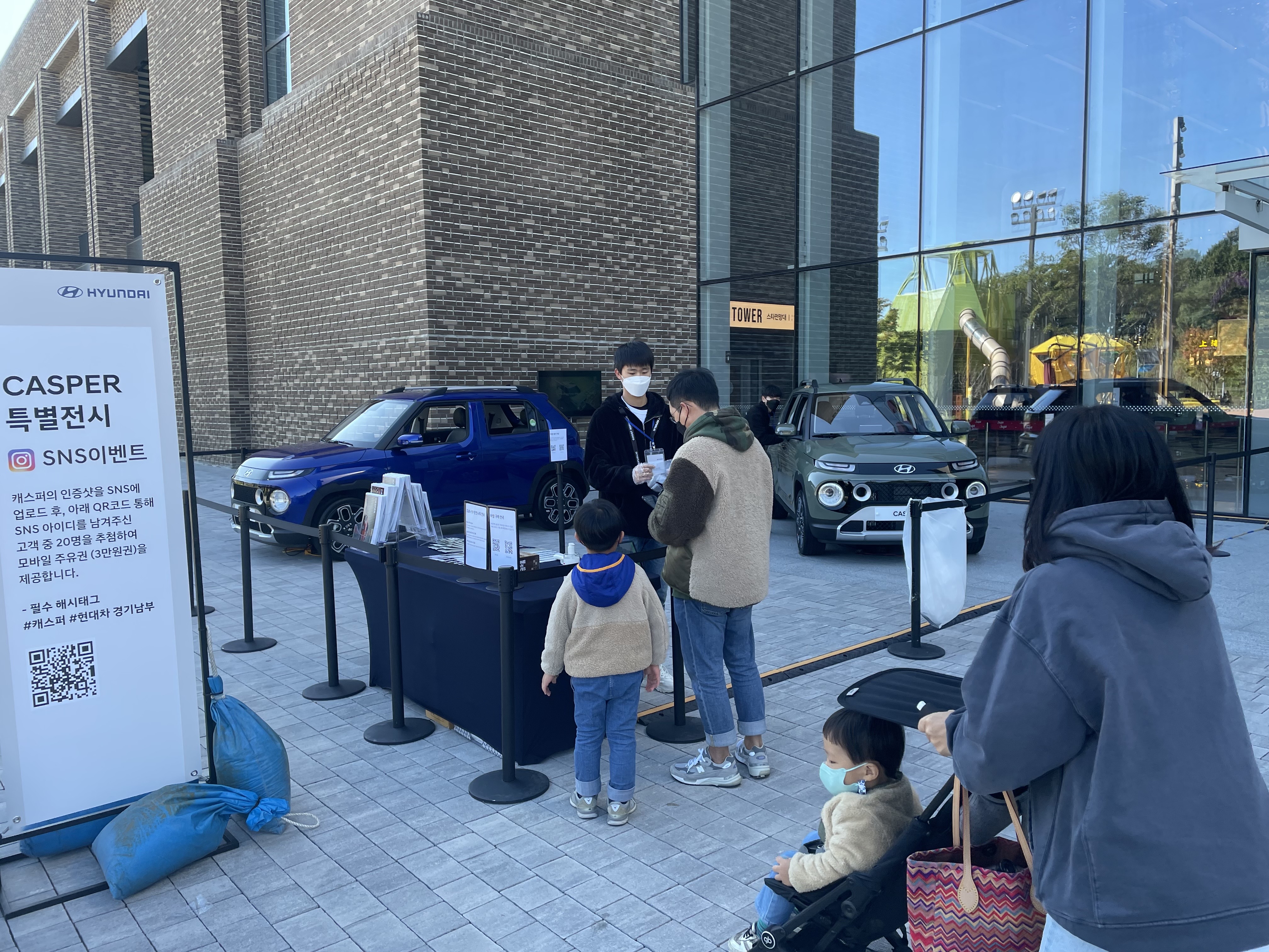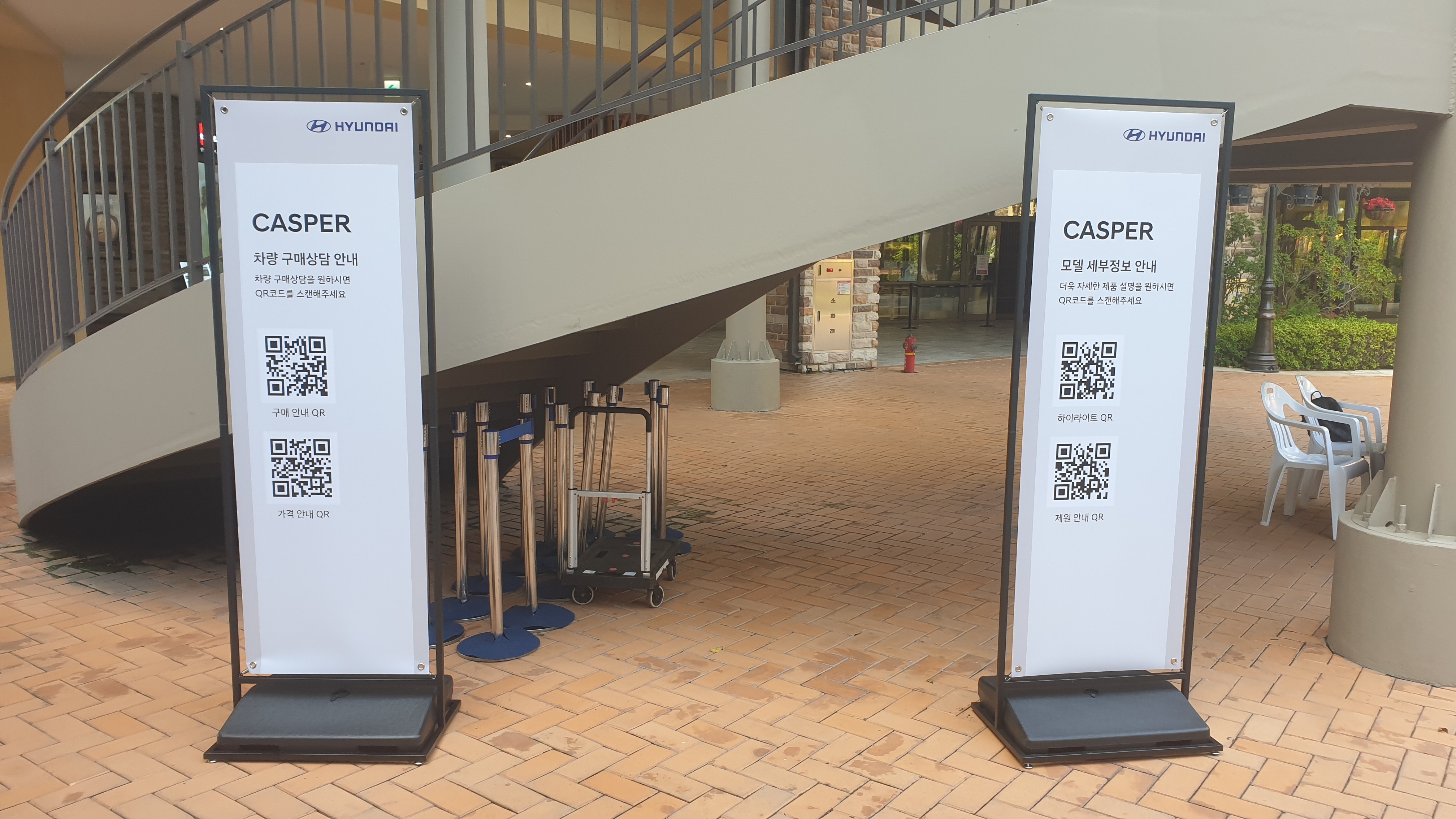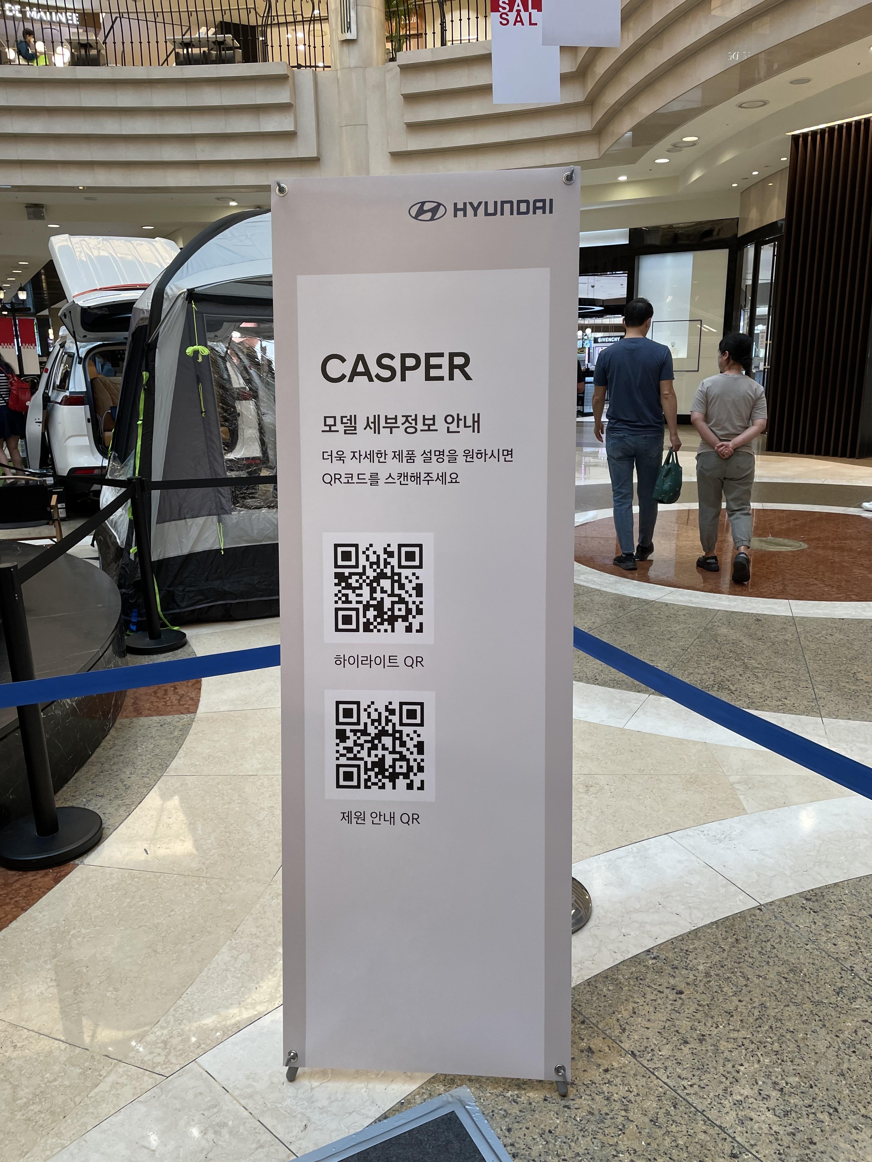 캐스퍼 차량 정보 및 견적 확인을 위한 QR 안내 배너까지 적재적소에 배치되어 많은 분들이 편안하게 QR 확인이 가능했어요
