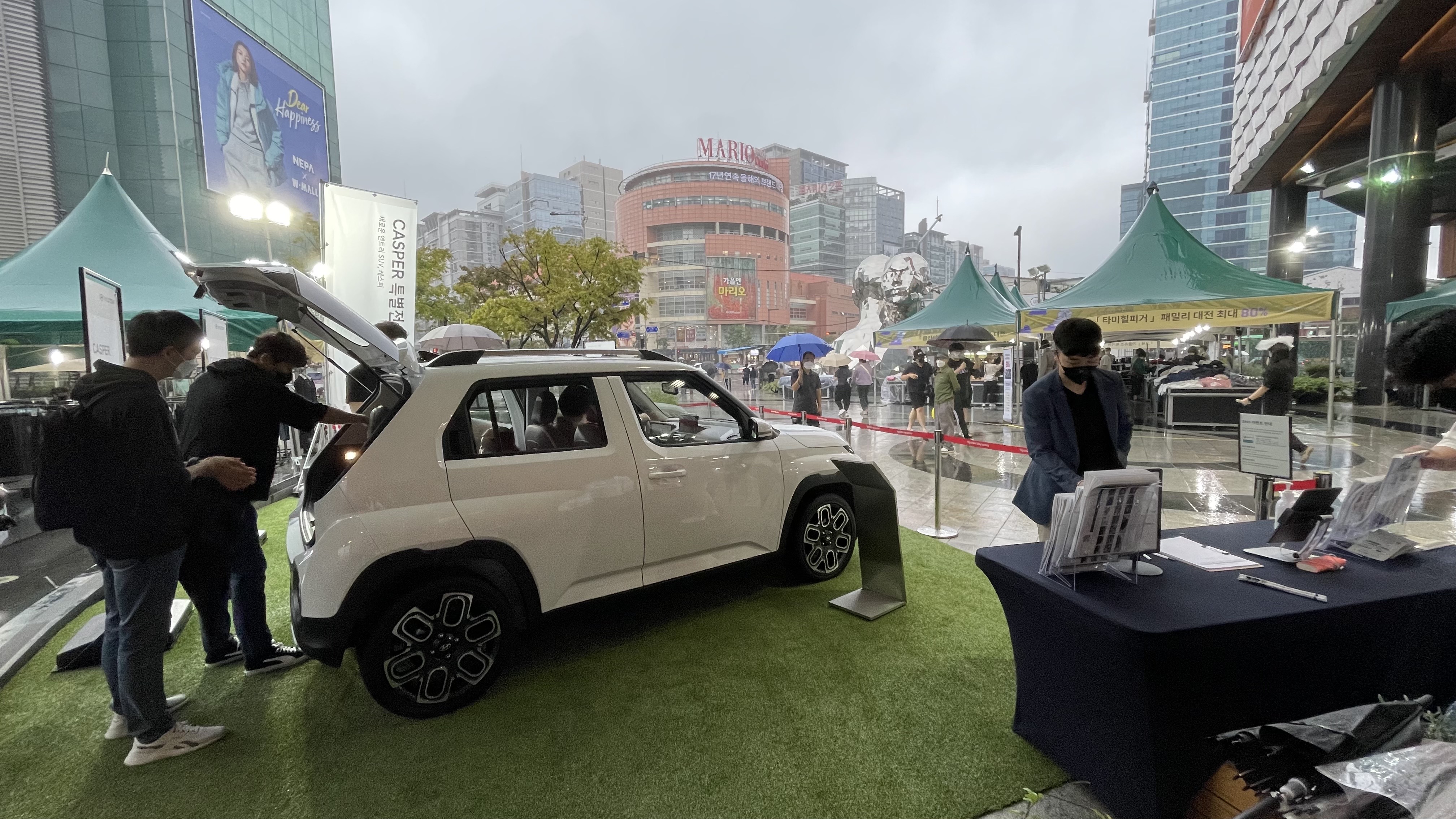 비는 그쳤지만 갑작스럽게 추워진 날씨로 인해 경기남부 캐스퍼 전시 역시 야외 전시에 걱정이 많았는데요