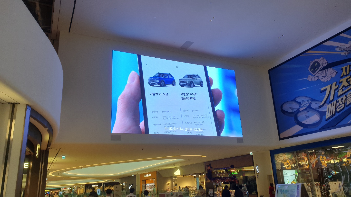 바로 안성 스타필드 내 LED 스크린과 배너를 통해서도 캐스퍼 전시 홍보가 가능했다는 부분인데요