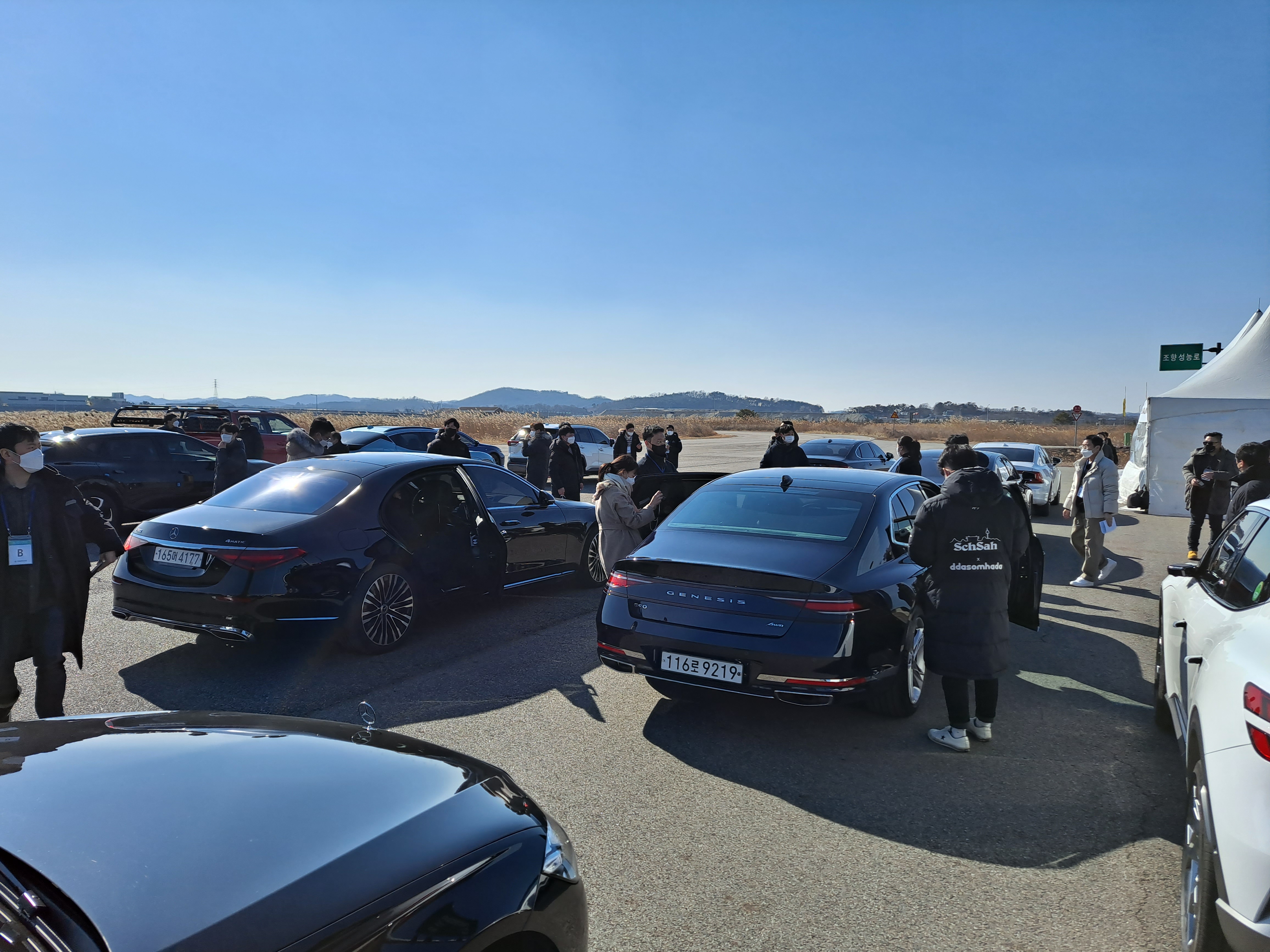 차량으로 붐비는 현장 속에서 일사분란하게 이동하며 차량 평가를 위해 움직이시는 평가단분들