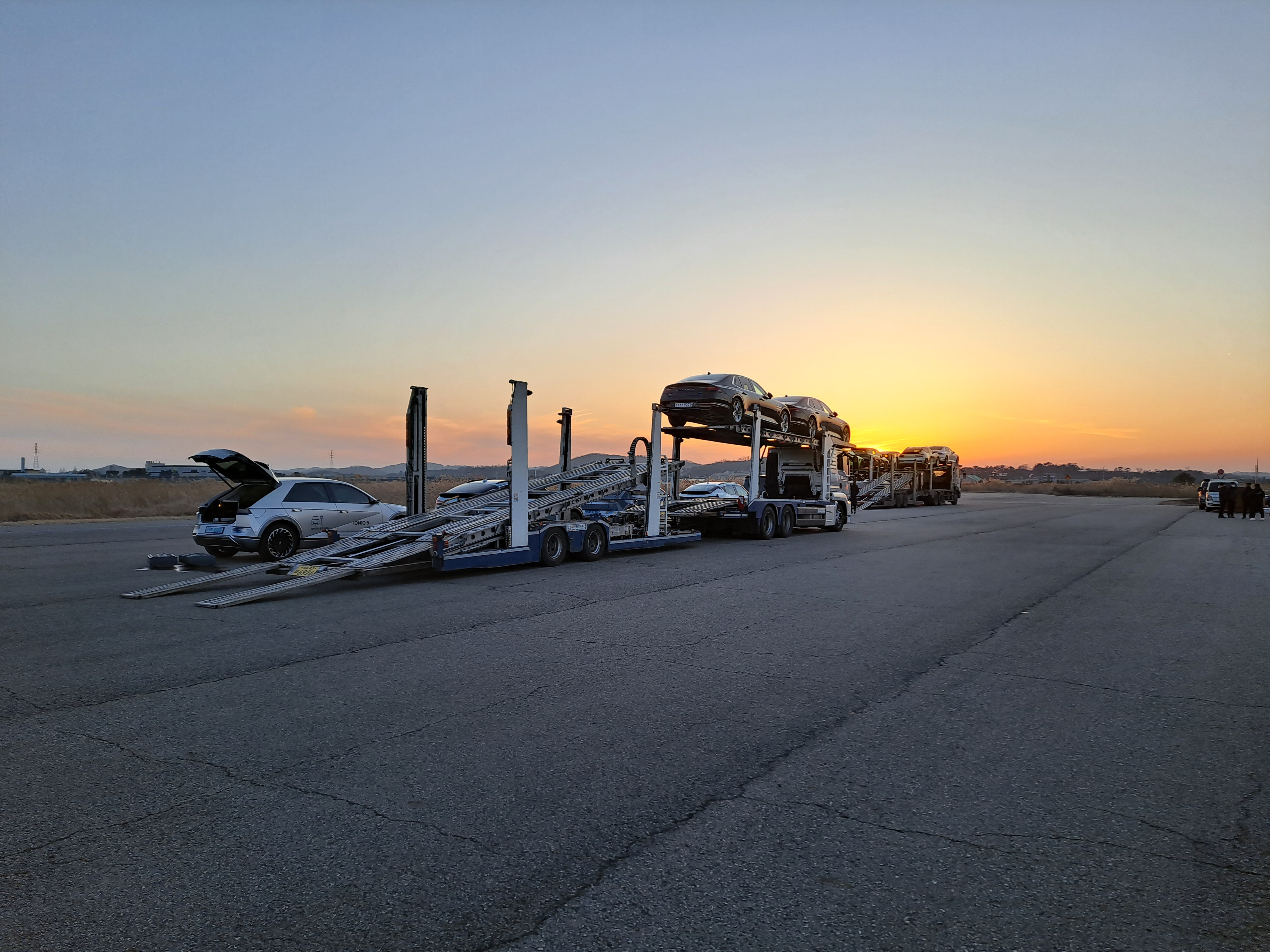 평가가 완료된 차량들을 다시 복귀시키기 위해 차량을 이동하는 모습입니다